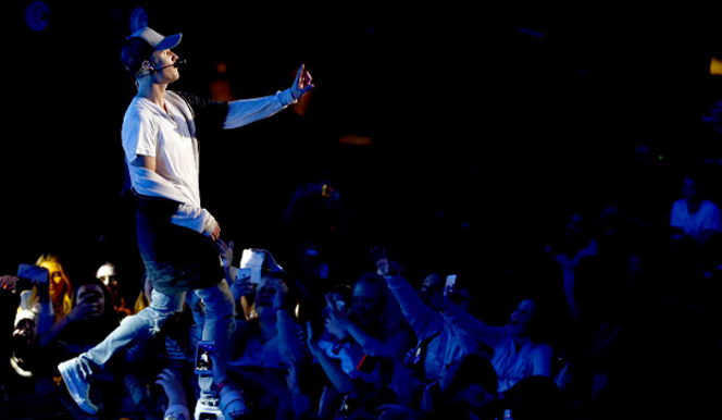 Després de cantar el tema Boyfriend, Bieber va netejar una mica d’aigua que havia caigut sobre l’escenari amb una tovallola, moment en el qual les fans intenten agafar-la. Després de cridar-li’s l’atenció, es dóna la volta i diu, he acabat, no faré el concert, mentre abandona l’escenari.