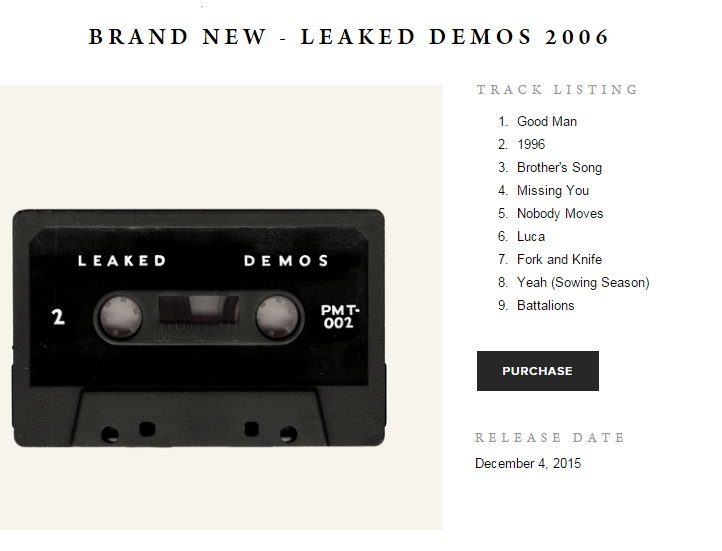 Brand New tenen la intenció d’editar un disc de demos, que al seu moment ja es va filtrar a la xarxa. Es tracta de les demos de The Devil and God Are Raging Inside of Me, que veuran la llum de forma oficial el dia 4 de desembre.