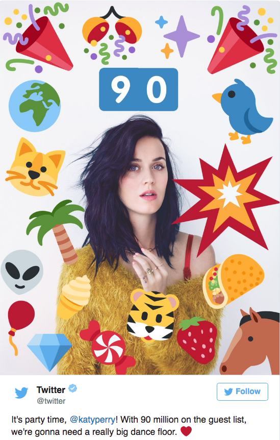 Mentre no arriba el seu esperat nou disc, Katy Perry continua sent notícia, ara per haver superat el rècord de seguidors de Twitter amb 90 milions de seguidors, una xifra que cap altra personalitat del món havia arribat.