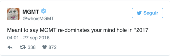 MGMT han fet saber a través de Twitter que el grup es torna a activar de cara el 2017 amb ganes de continuar formant part de les nostres vides amb la seva psicodèlia.