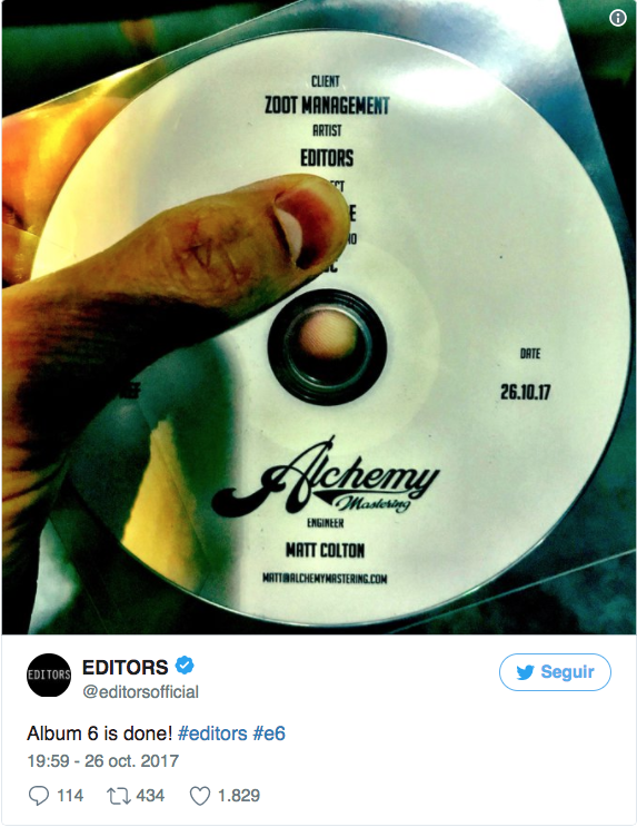 Editors han fet saber a través de les xarxes socials, que havien acabat la gravació d’un nou disc, que els portarà el mes d’abril a actuar a Barcelona.