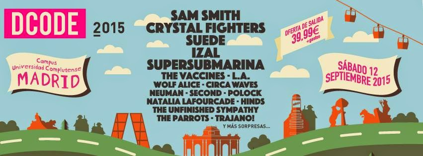 El festival Dcode ha anunciat els primers noms per l’edició d’enguany on destaquen Sam Smith (que esperem que arribi recuperat i pugui actuar), Crystal Fighters, The Vaccines, Suede, Circa Waves, Wolf Alice i bandes espanyoles com Supersubmarina, Izal o Second entre altres.