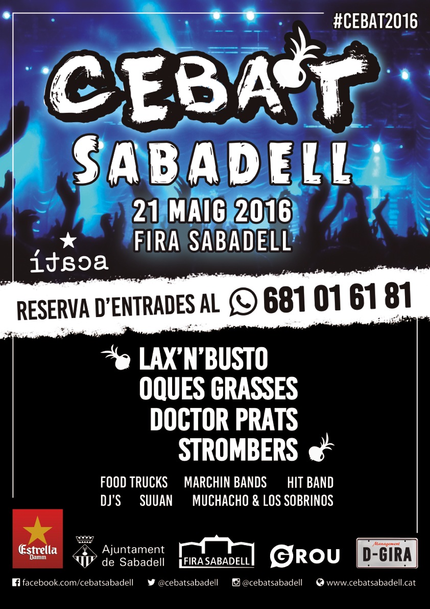 Lax’n’Busto, Oques Grasses, Doctor Prats i Strombers són els caps de cartell a l’escenari principal de Fira Sabadell el dissabte 21 de maig a partir de les 19 hores, però en un segon escenari més petit s’aniran alternant les actuacions del grup de versions local Hit Band, la rumba de Muchacho & Los Sobrinos i altres sorpreses.