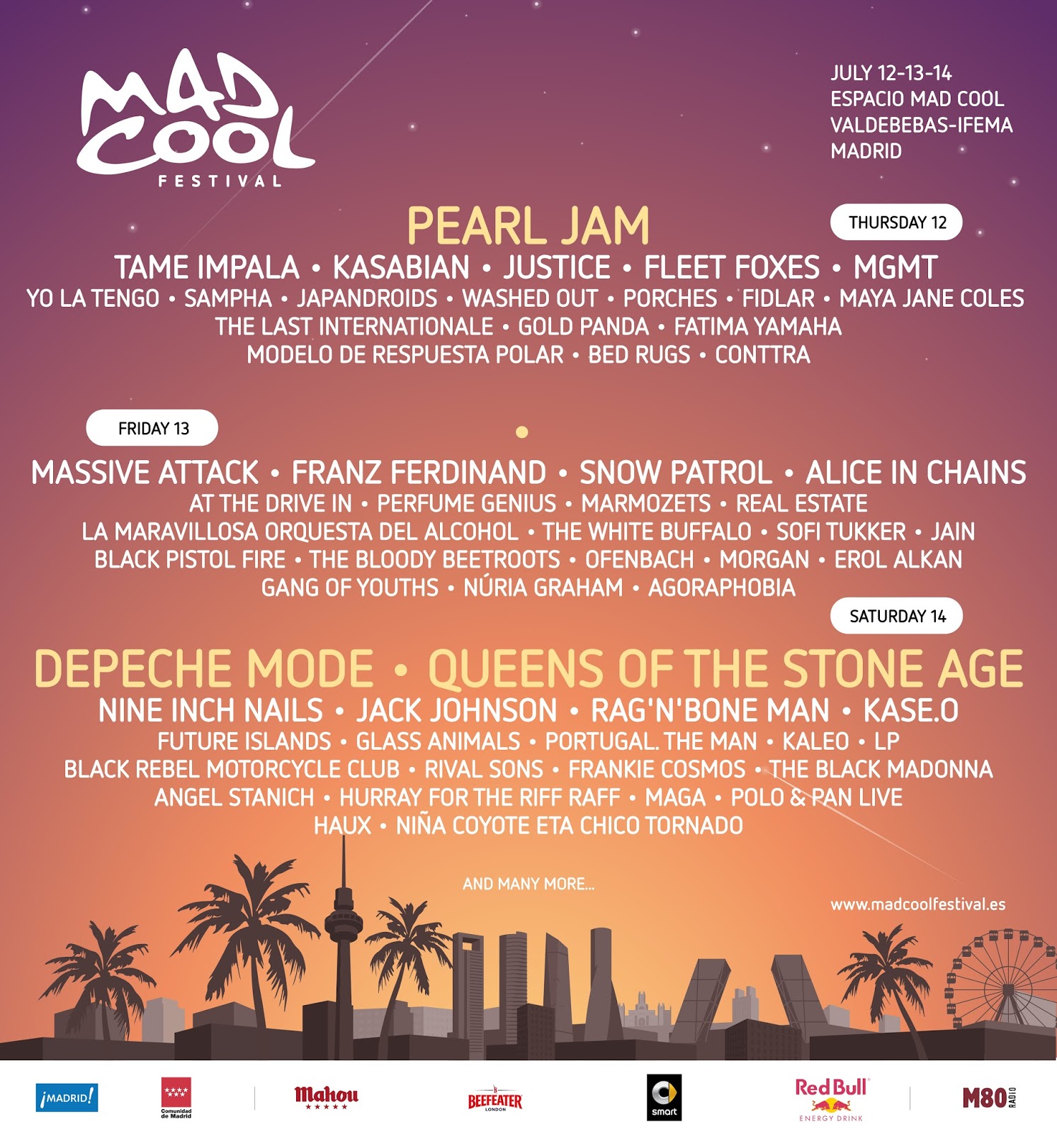 El festival Mad Cool ha tirat la casa per la finestra i ha donat a conèixer un bon grapat de nous artistes que se sumen als ja anunciats anteriorment, i on destaquen Franz Ferdinand, Tame Impala, Núria Graham, Alice in Chains, LP, Jain, Portugal The Man, Kaleo i un bon grapat de noms més, que actuaran del 12 al 14 de juliol a Madrid.