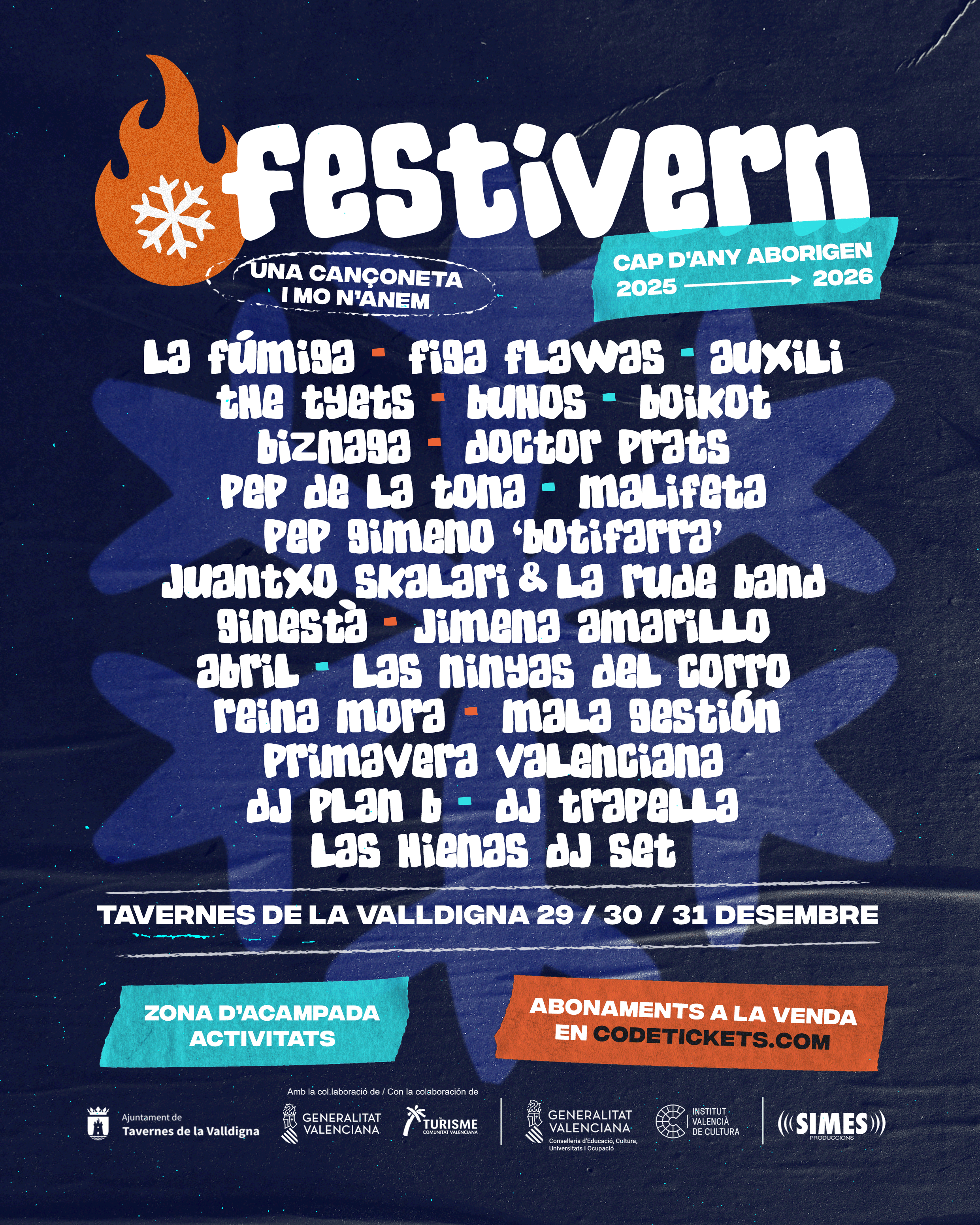 El Festivern, la gran cita musical de Cap d’Any al País Valencià, tornarà a Tavernes de la Valldigna per celebrar la seua XIX edició del 29 al 31 de desembre. Durant tres jornades, la localitat es convertirà en epicentre cultural i festiu amb més de vint bandes que faran vibrar el públic.