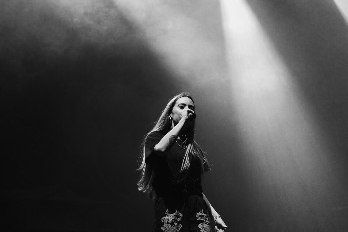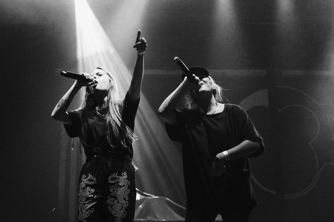 Quan ja tothom era dins la sala, les impressionants teloneres d’aquella nit, Santa Salut i Elane, van sortir a rapejar les seves lletres reivindicatives feministes. Les dues cantants van fer saltar a tothom amb els seus ritmes durs i van escalfar al públic per al següent concert.